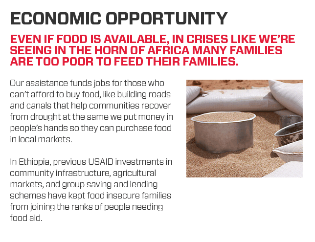 Even if food is available, in crises like we're seeing in the Horn of Africa many families are too poor to feed their families.